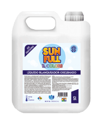 SUN FULL Blanqueador Tensioactivado para Ropa de Color. Alta performance. Ideal para la recuperación de prendas que sufren de oscurecimiento u oxidación. Producto de alto poder blanqueador. Especialmente formulado para el blanqueo seguro de ropa de color. Apto para ser utilizado en todo nivel de dureza de agua. No ataca las fibras. prolonga la vida útil de las prendas, asegura una recuperación perfecta exaltando los colores. Posee abrillantadores ópticos que resaltan los colores. Protege. Su formulación permite una disolución controlada, protegiendo así las prendas. Exclusivo uso profesional. Especialmente recomendado para la recuperación de prendas de color en: Lavanderías Hospitalarias, Hoteleras e Industriales. Biodegradable. Recomendaciones: Está especialmente recomendado para: Hospitales: ropa de cama, uniformes, ropa de cirugía con manchas de sangre, fluidos corporales, medicamentos. Lavaderos Industriales: ropa de cama, uniformes, ropa de cirugía con manchas de sangre, fluidos corporales, toallas, mantelería, ropa de cocina con manchas de vino, café, jugos, salsas, etc.
