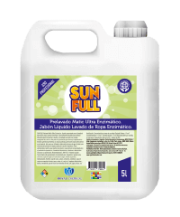 SUN FULL, Líquido de Espuma Controlada para el lavado de todo tipo de Ropa, está especialmente recomendado para Lavaderos con Ropa proveniente de Hospitales, Hoteles, Moteles, Industrias, Residencias Particulares, Restaurantes, Oficinas, Locales Comerciales, Geriátricos. Apto para el lavado de todo tipo de ropa blanca y de color. Formulado para suciedades Livianas, Medianas y Pesadas. Agradable perfume. Biodegradable al 80%. Libre de fosfatos.